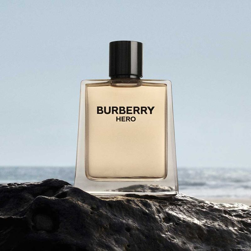 Burberry Hero Eau de Toilette for Men, la primera fragancia de Riccardo Tisci para Burberry. Un hombre en busca de transformación y heroísmo moderno. Este perfume abraza la dualidad: fuerza y sutileza, poder y compasión, atletismo y creatividad. Posee bergamota, enebro y pimienta negra. El enebro aporta frescura a la fragancia y se profundiza con un trío de aceites cálidos de madera de cedro de tres cadenas montañosas distintas.